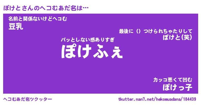 | 2回繰り返すあだ名 | 『ぽけぽけ』『ぽぽけけ』『ぬめぬめ』 |