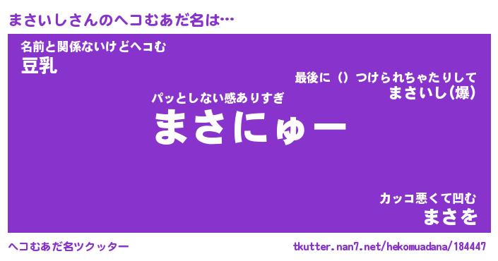 | 男性向けラノベタイトル風あだ名 | 『まさいしの憂鬱』 |