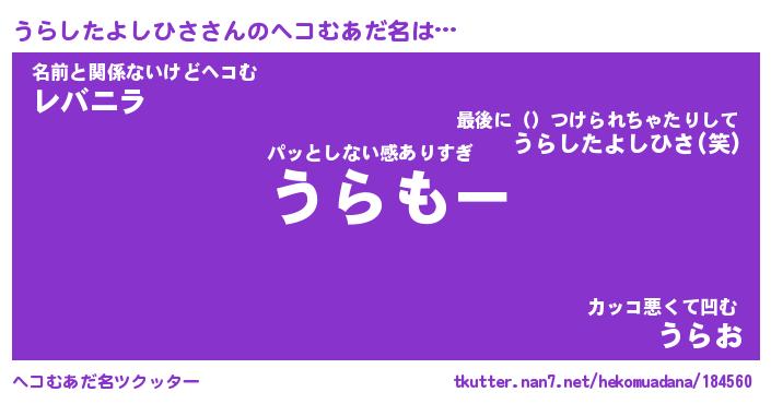 | 意味不明あだ名 | 『ペロリンうらしたよしひさ』 |
