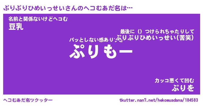 | 意味不明あだ名 | 『ペロリンぷりぷりひめいっせい』 |