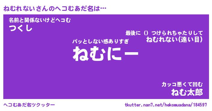 | ファンタジー風あだ名 | 『ネムフェル』『エターナルネムレナイー』 |