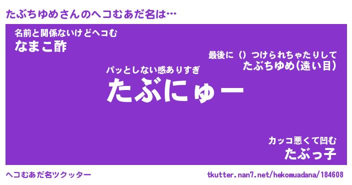 | ファンタジー風あだ名 | 『タブフェル』『エターナルタブチユメー』 |