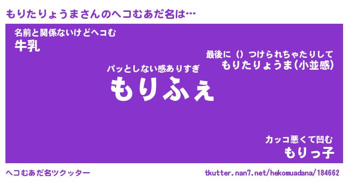 | 男性向けラノベタイトル風あだ名 | 『もりたりょうまの憂鬱』 |