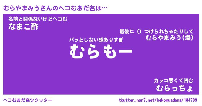 | ヒーロー風カッコイイあだ名 | 『スーパームラヤマミウ』『幻影騎士ムラ』 |