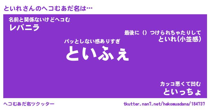 | ポケモン風あだ名 | 『トイチュウ』『トイレダネ』 |