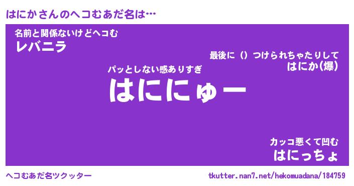 | 意味不明あだ名 | 『ペロリンはにか』『はにかフォーエバー』 |
