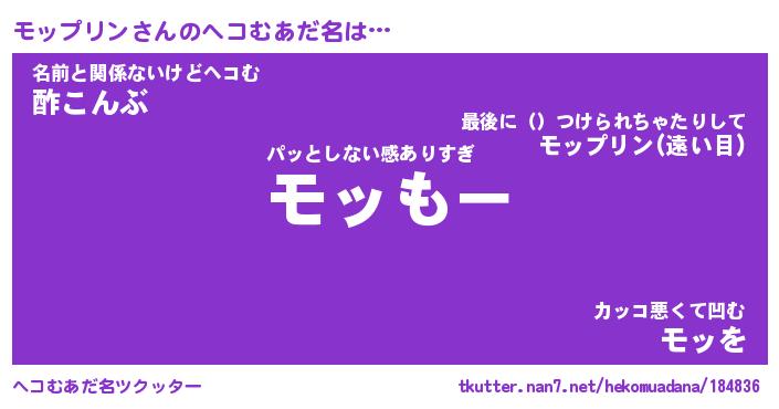 | ファンタジー風あだ名 | 『モッフェル』『エターナルモップリンー』 |
