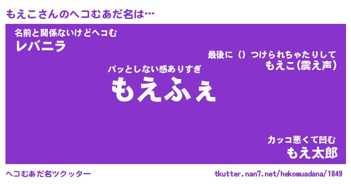 | 意味不明あだ名 | 『ペロリンもえこ』『もえこフォーエバー』 |