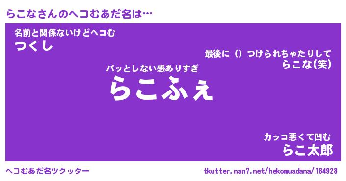 | 意味不明あだ名 | 『ペロリンらこな』『らこなフォーエバー』 |