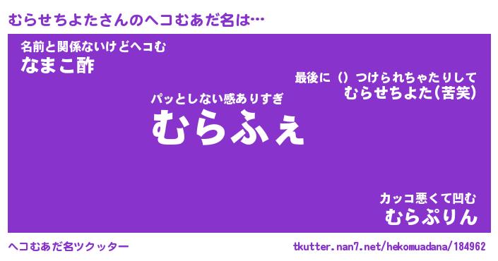 | ヒーロー風カッコイイあだ名 | 『スーパームラセチヨタ』『銀牙騎士ムラ』 |