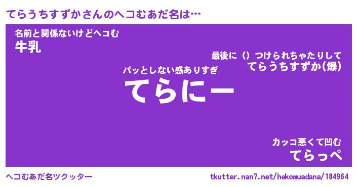 | 恥ずかしいあだ名 | 『プリティーてらうちすずか』『てらちん』 |