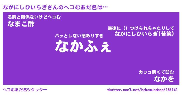 | 意味不明あだ名 | 『ペロリンなかにしひいらぎ』 |