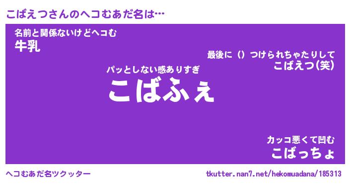 | ファンタジー風あだ名 | 『コバフェル』『エターナルコバエツー』 |