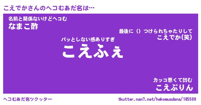 | 意味不明あだ名 | 『ペロリンこえでか』『永久保存こえでか』 |