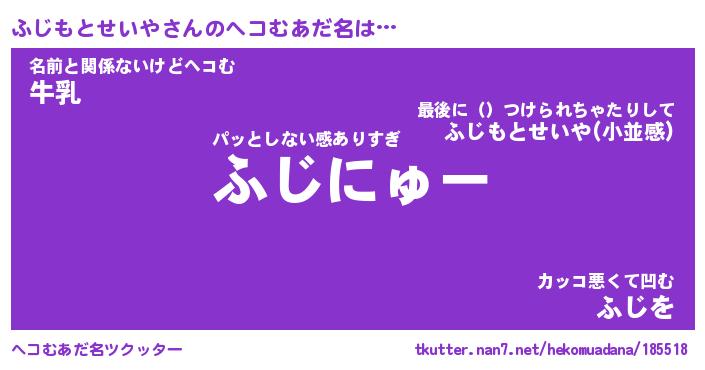 | 恥ずかしいあだ名 | 『プリティーふじもとせいや』『ふじちん』 |