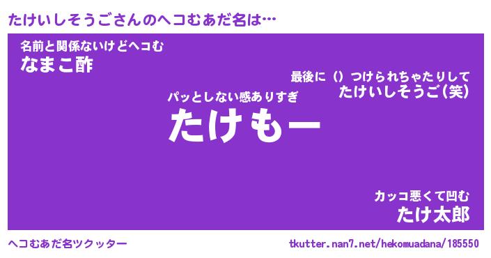 | 胡散臭い通販商品みたいなあだ名 | 『必ず成功する霊験あらたかなお札…その名も「たけいしそうご」』 |