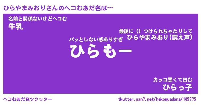 | 胡散臭い通販商品みたいなあだ名 | 『億万長者になれる水晶球…その名も「ひらやまみおり」』 |