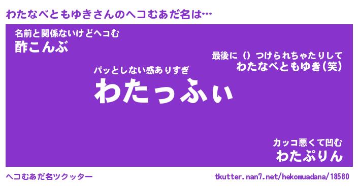 | ポケモン風あだ名 | 『ワタチュウ』『ワタナダネ』 |
