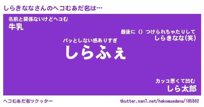 | 意味不明あだ名 | 『ペロリンしらきなな』 |