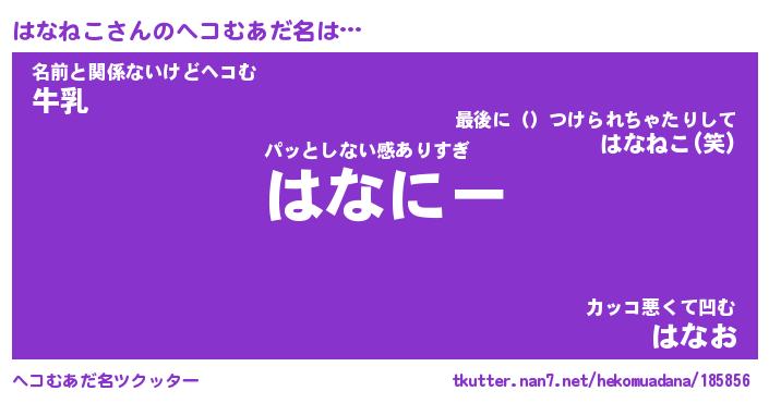 | ポケモン風あだ名 | 『ハナチュウ』『ハナネダネ』 |