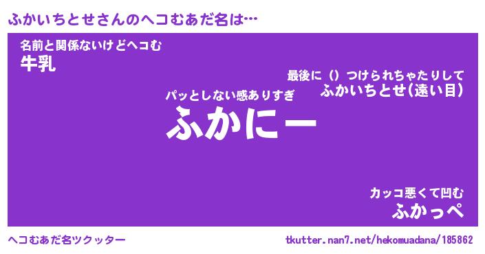 | ヒーロー風カッコイイあだ名 | 『スーパーフカイチトセ』『天弓騎士フカ』 |