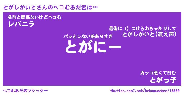 | ポケモン風あだ名 | 『トガチュウ』『トガシダネ』 |