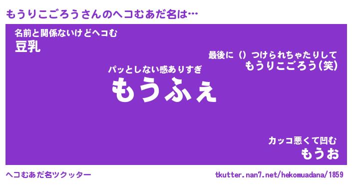 | ヒーロー風カッコイイあだ名 | 『スーパーモウリコゴロウ』 |