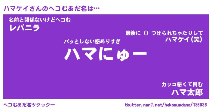 | 意味不明あだ名 | 『ペロリンハマケイ』『永久保存ハマケイ』 |
