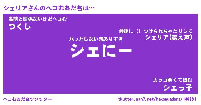 | 2回繰り返すあだ名 | 『シェシェ』『シシェェ』『ぬれぬれ』 |
