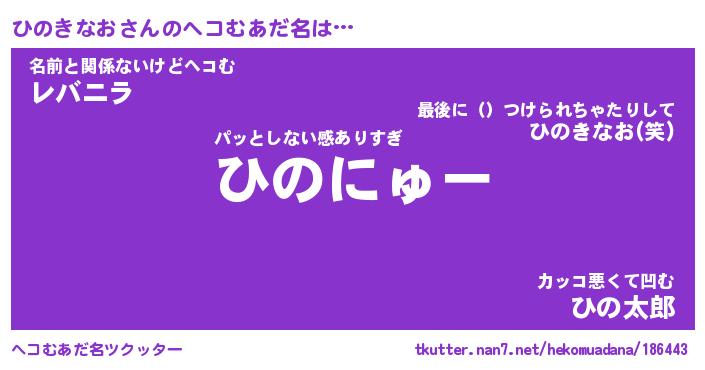 | ファンタジー風あだ名 | 『ヒノフェル』『エターナルヒノキナオー』 |