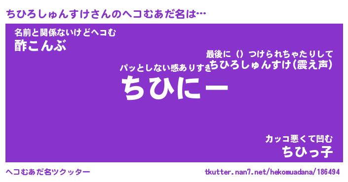| ヒーロー風カッコイイあだ名 | 『スーパーチヒロシュンスケ』 |