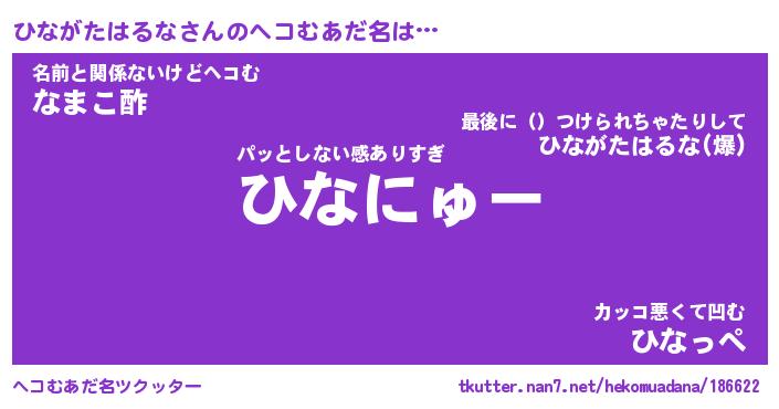 | 意味不明あだ名 | 『ペロリンひながたはるな』 |