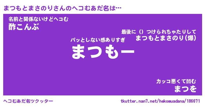 | 2回繰り返すあだ名 | 『まつまつ』『ままつつ』『べしべし』 |