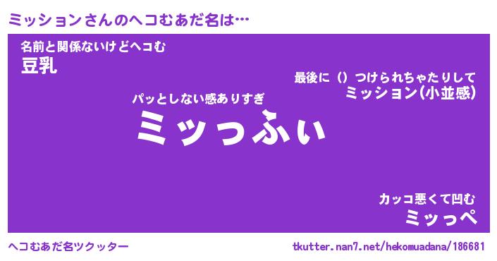 | ファンタジー風あだ名 | 『ミッフェル』『エターナルミッションー』 |