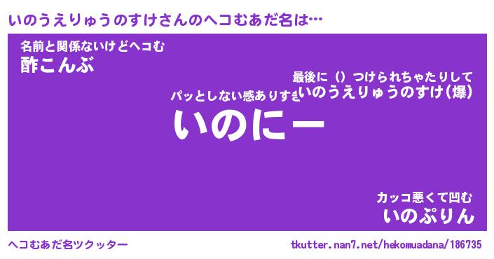 | 男性向けラノベタイトル風あだ名 | 『いのうえりゅうのすけの憂鬱』 |