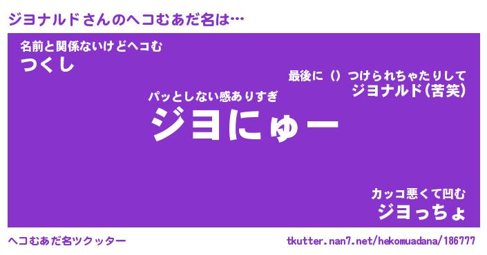 | ヒーロー風カッコイイあだ名 | 『スーパージヨナルド』『暗黒騎士ジヨ』 |