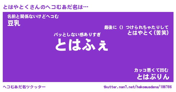 | ポケモン風あだ名 | 『トハチュウ』『トハヤダネ』 |