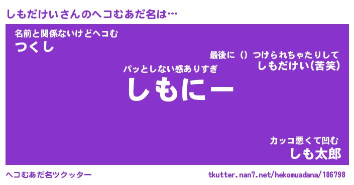 | ファンタジー風あだ名 | 『シモフェル』『エターナルシモダケイー』 |