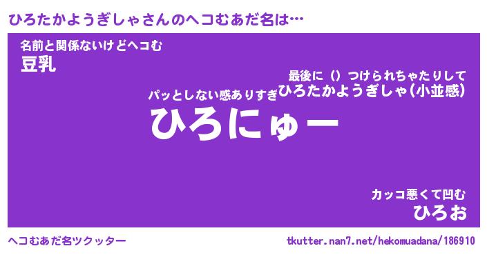 | ポケモン風あだ名 | 『ヒロチュウ』『ヒロタダネ』 |
