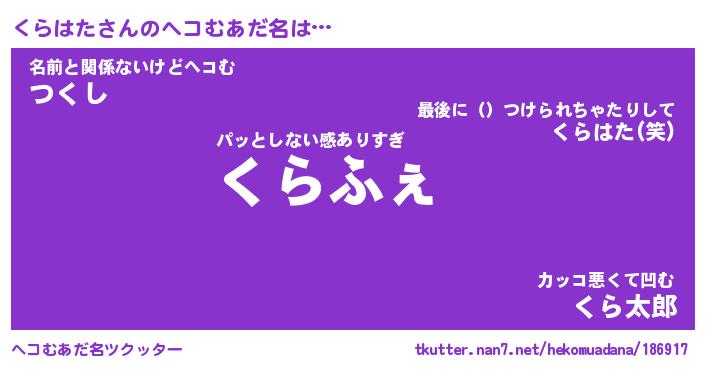 | 意味不明あだ名 | 『ペロリンくらはた』『永久保存くらはた』 |