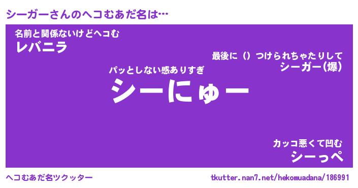 | 意味不明あだ名 | 『ペロリンシーガー』『永久保存シーガー』 |
