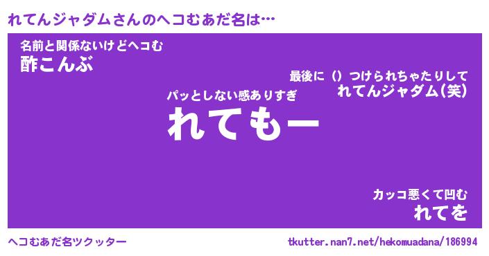 | 女子向けラノベタイトル風あだ名 | 『れてんジャダム姫と円卓の騎士』 |