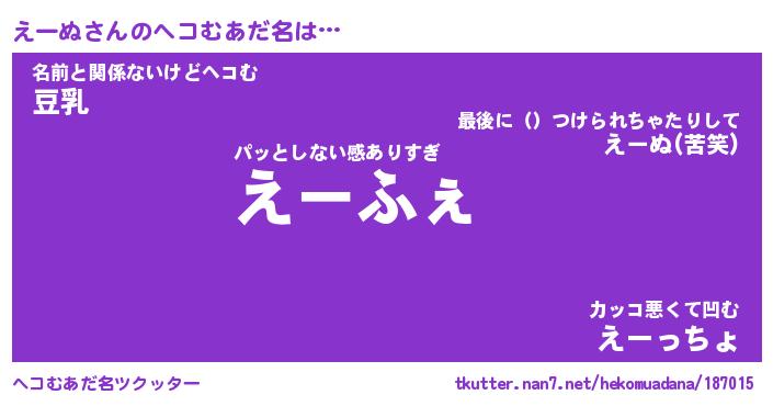 | 意味不明あだ名 | 『ペロリンえーぬ』『えーぬフォーエバー』 |