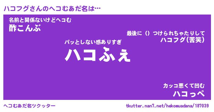 | ポケモン風あだ名 | 『ハコチュウ』『ハコフダネ』 |