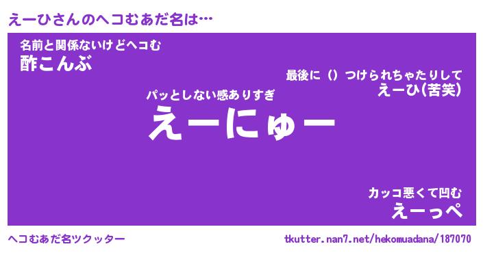 | ヒーロー風カッコイイあだ名 | 『スーパーエーヒ』『ウルトラえーひマン』 |