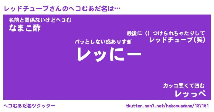| 男性向けラノベタイトル風あだ名 | 『レッドチューブの憂鬱』 |