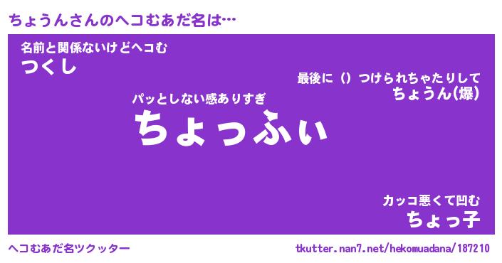 | 意味不明あだ名 | 『ペロリンちょうん』『永久保存ちょうん』 |