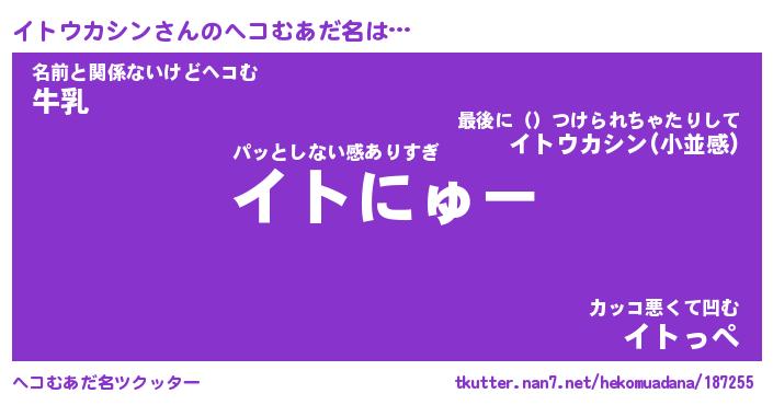 | 男性向けラノベタイトル風あだ名 | 『イトウカシンの憂鬱』 |