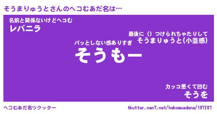 | ポケモン風あだ名 | 『ソウチュウ』『ソウマダネ』 |