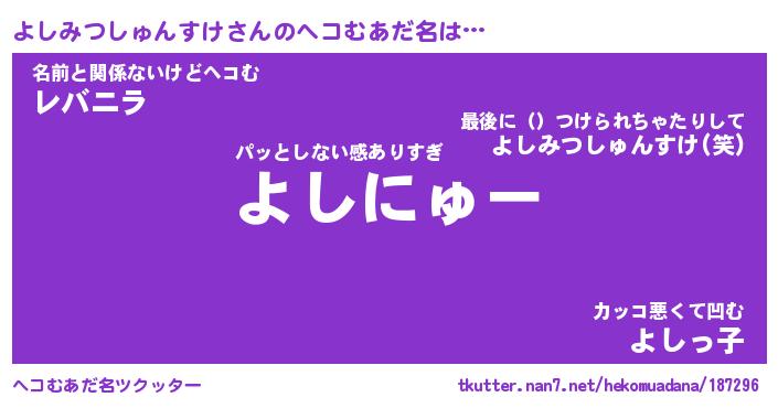 | 意味不明あだ名 | 『ペロリンよしみつしゅんすけ』 |